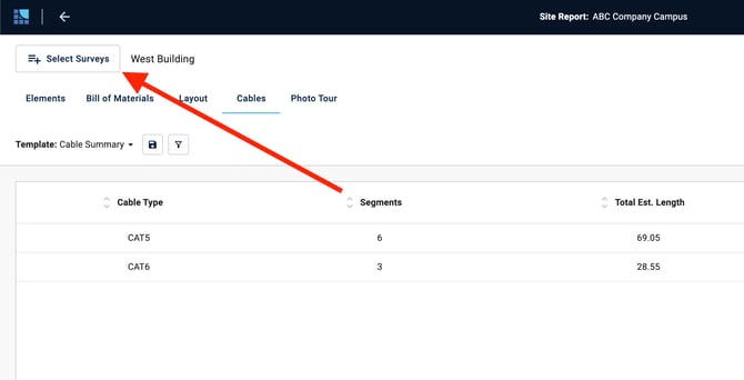 - If you wish to include multiple surveys in this report, click the Select Surveys button to choose the surveys you would like to include: