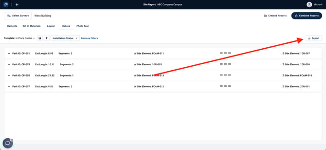 Create a PDF or Excel spreadsheet report that compiles and measures your cable runs.