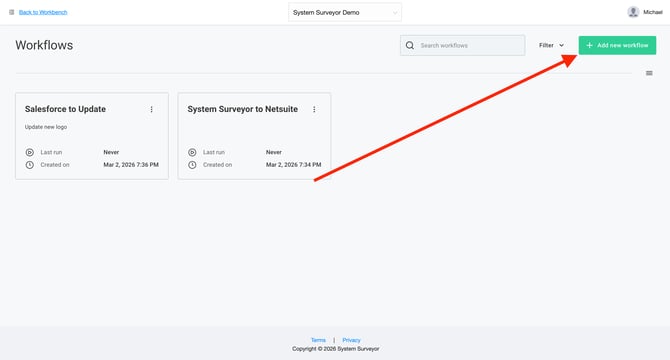 Begin a new Workflow by selecting Add New Workflow: