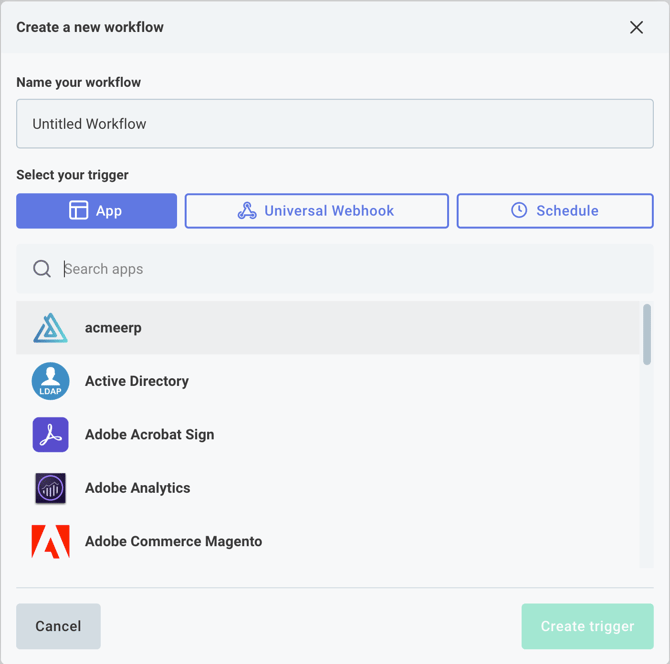 - Click Create Trigger to begin building your Workflow