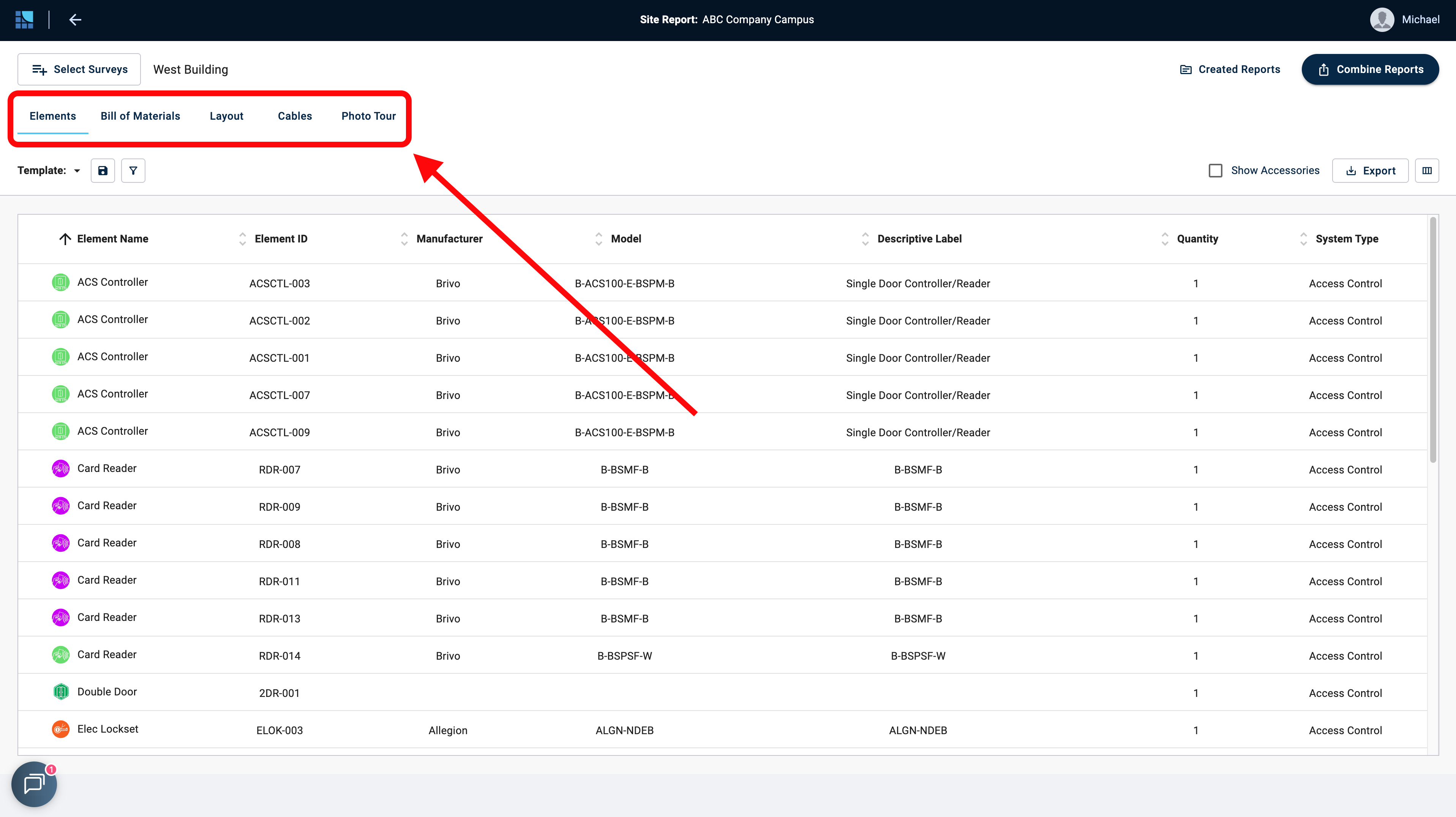 - You can filter by Element Name, Installation Status, System Type, or Descriptive Label: