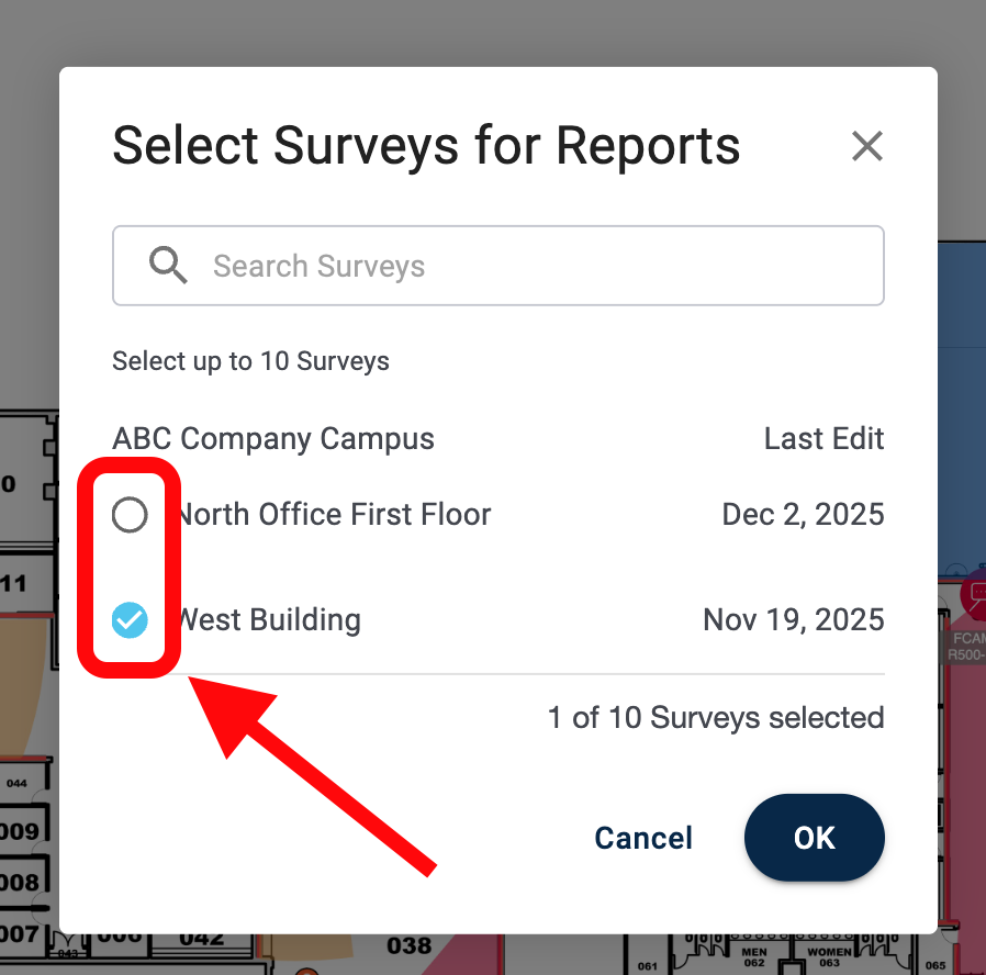 - Check the bubble next to each survey you wish to include: