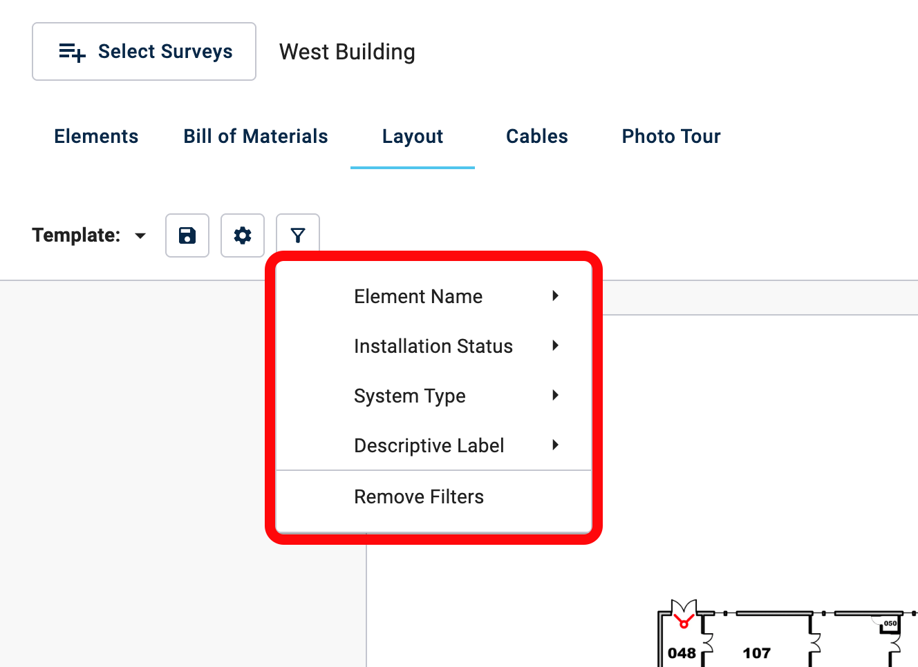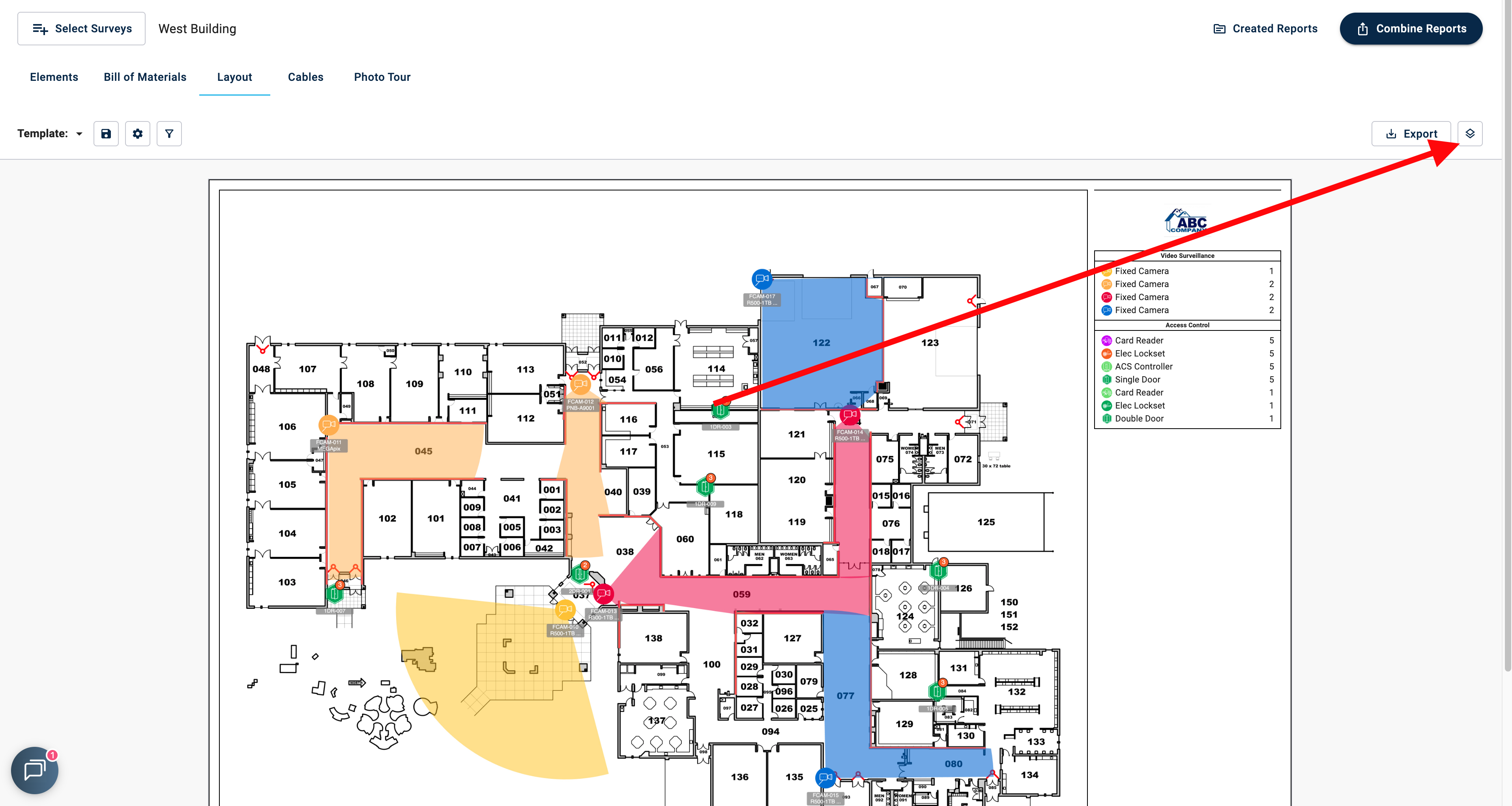 Create a customizable report that shows your Survey Layout and floor plan.