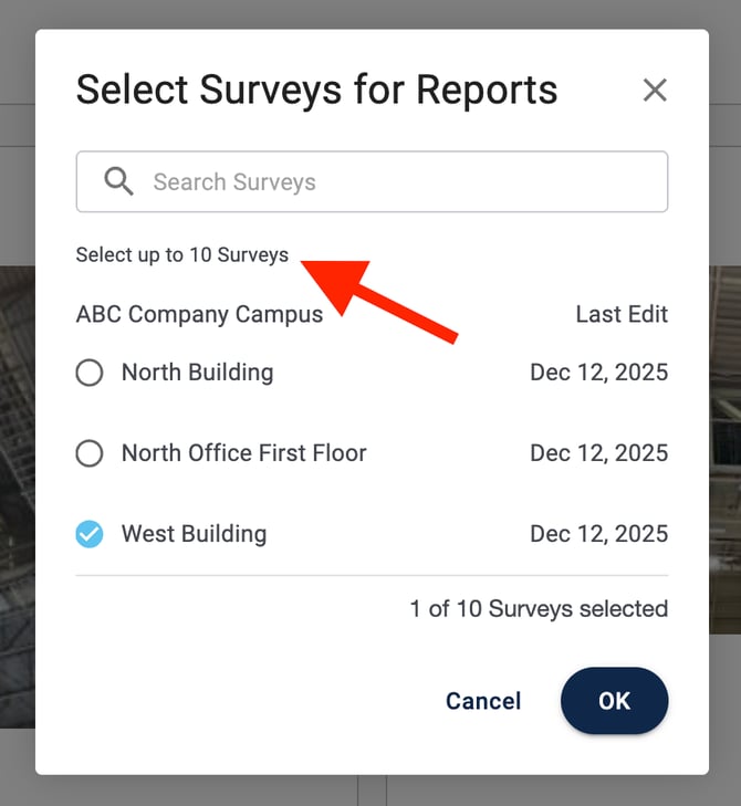 - If you wish to include multiple surveys in this report, click the Select Surveys button to choose the surveys you would like to include.