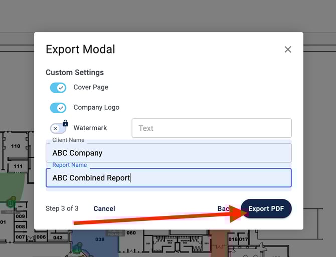 - Add a cover page, logo, and your report details. Then, click "Export PDF":